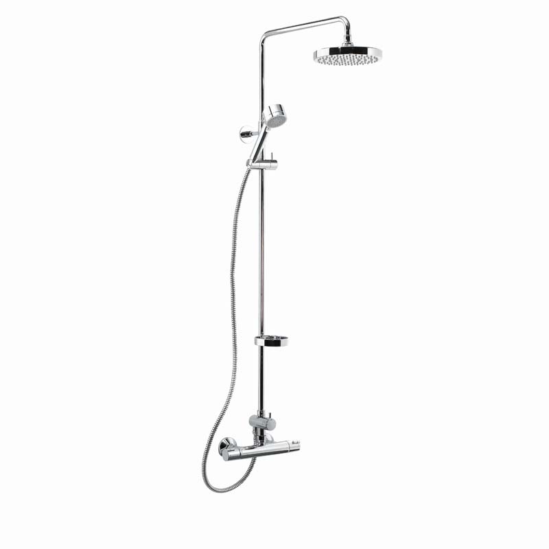 Takdusj 200mm med termostat og hånddusj. Justerbar lengde på stang. Rub-clean funksjon på dusjhodet.