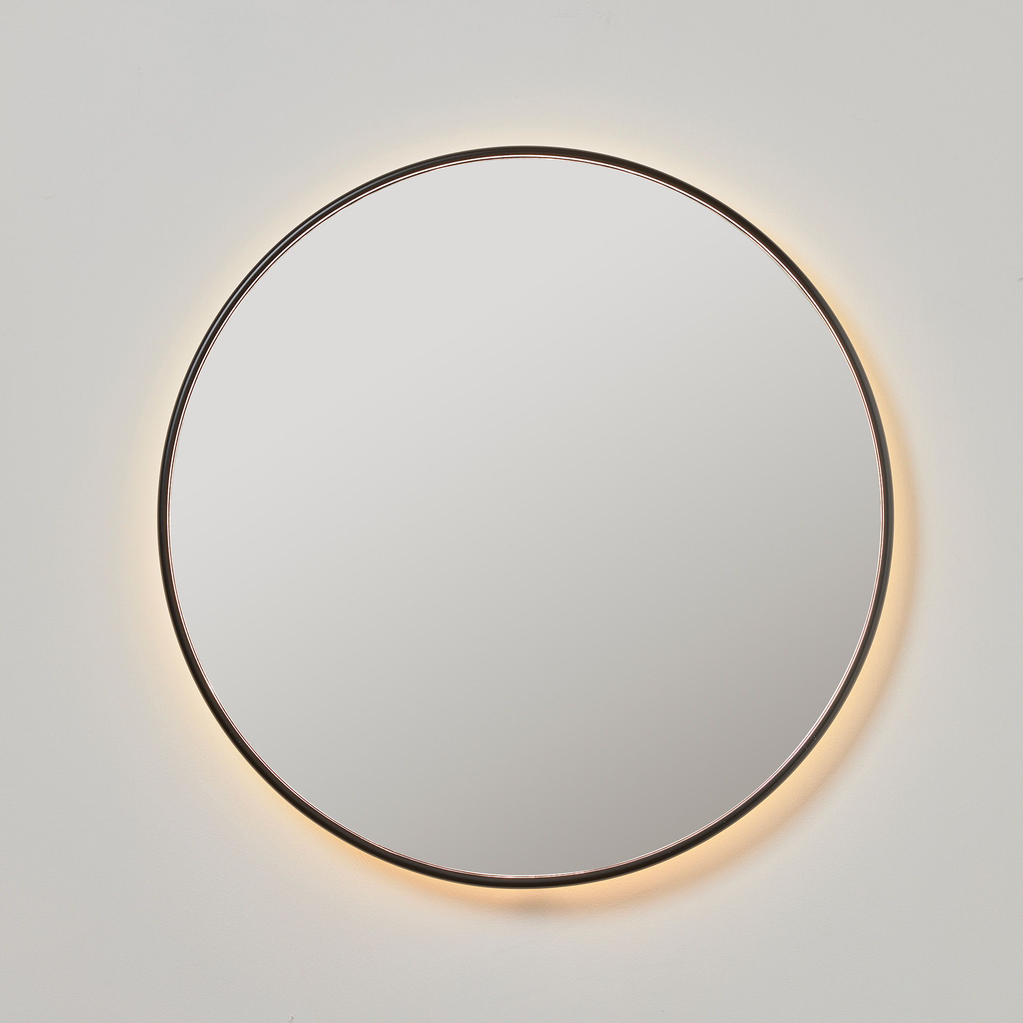 Bloom er et elegant rundt speil med sort ramme og to dimbare lys. Skap stemning på badet med det bakenforliggende lyset, og bruk lyset på innsiden av speilet for en god og klar belysning for daglig stell. Speilet i 80cm passer utmerket sammen med baderomsinnredninger fra 80-100cm. Den sorte rammen gir et moderne inntrykk, og er perfekt i kombinasjon med andre sorte detaljer på badet.