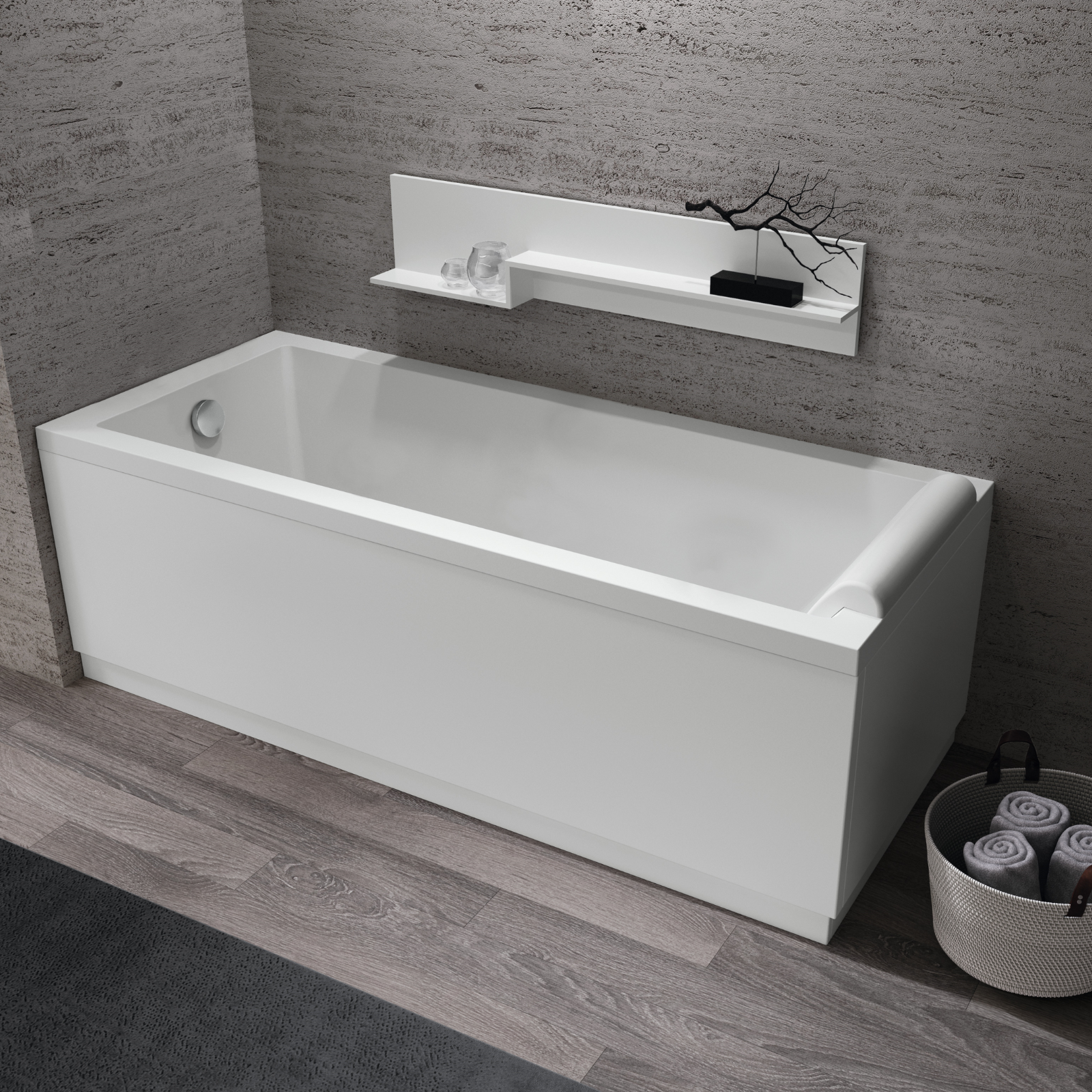 Stort badekar med front og endepanel i hvit matt 180x80