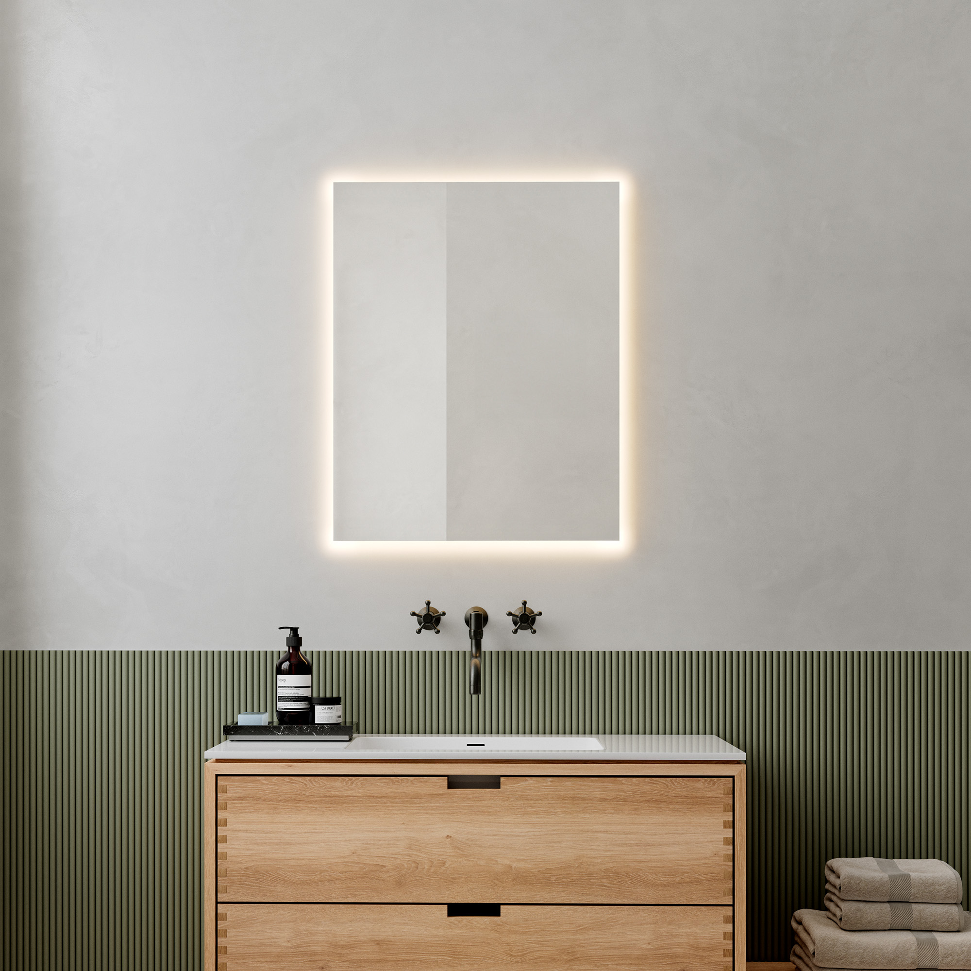 Celina firkantet speil med integrert bakenforliggende LED-belysning som gir en myk lyskrans på veggen. Den indirekte belysningen skaper et behagelig uttrykk på badet og gir god orienteringsbelysning uten synlige lyskilder. Speilet har integrert LED-lys med hvitt lys (3400 K). Lyset gir et behagelig og rolig lysbilde rundt speilet og gir en opplevelse av velvære. Lyset har også en CRI-verdi på over 95, slik at lyset gjengir farger godt. Celina er tilpasset bruk i våtrom og leveres klar for fast tilkobling.
