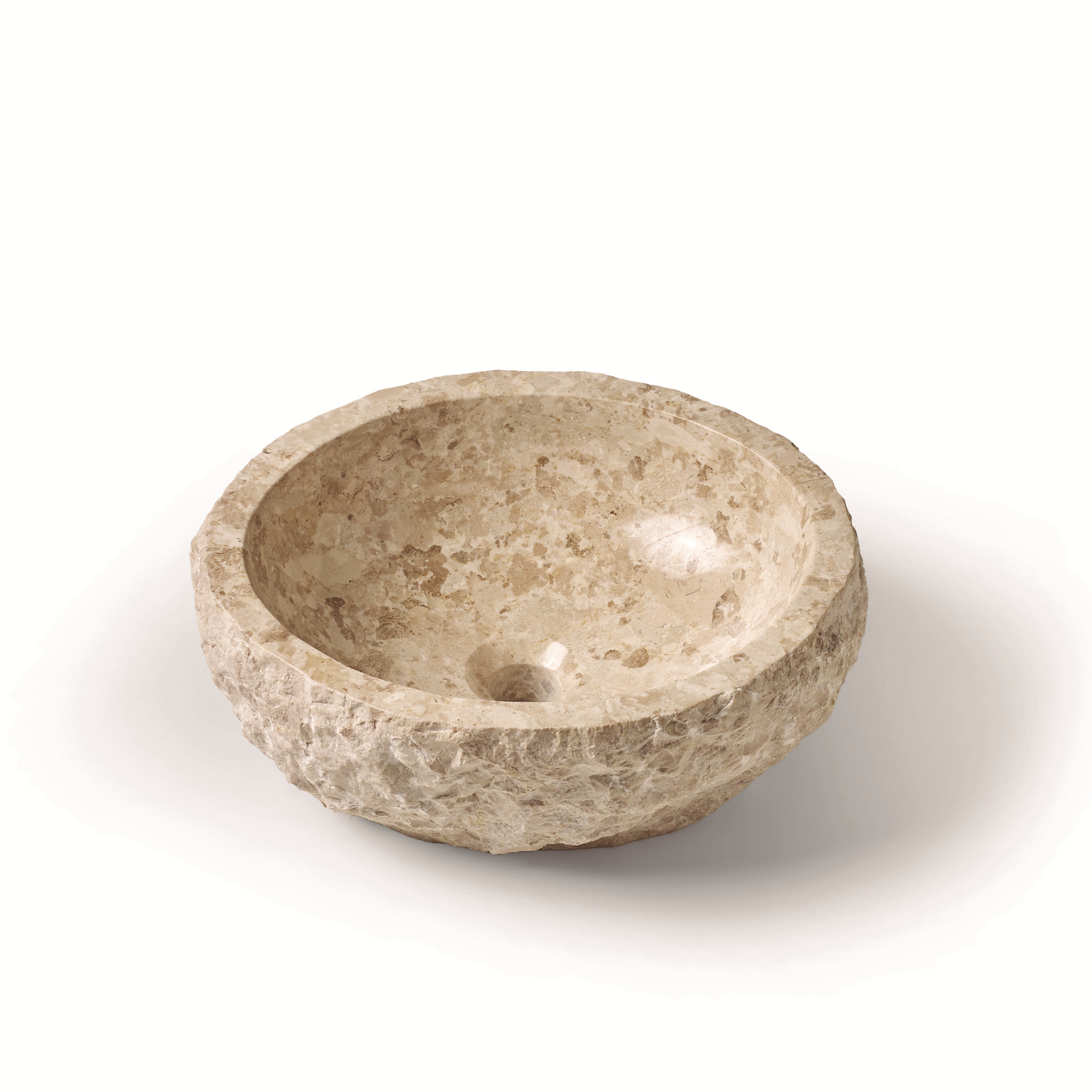 Denver steinservant i lys beige marmor. Servanten har ikke overløp og veier ca 20kg. Tyngden krever tykk benkeplate eller ekstra forsterkning på baderomsmøbel.