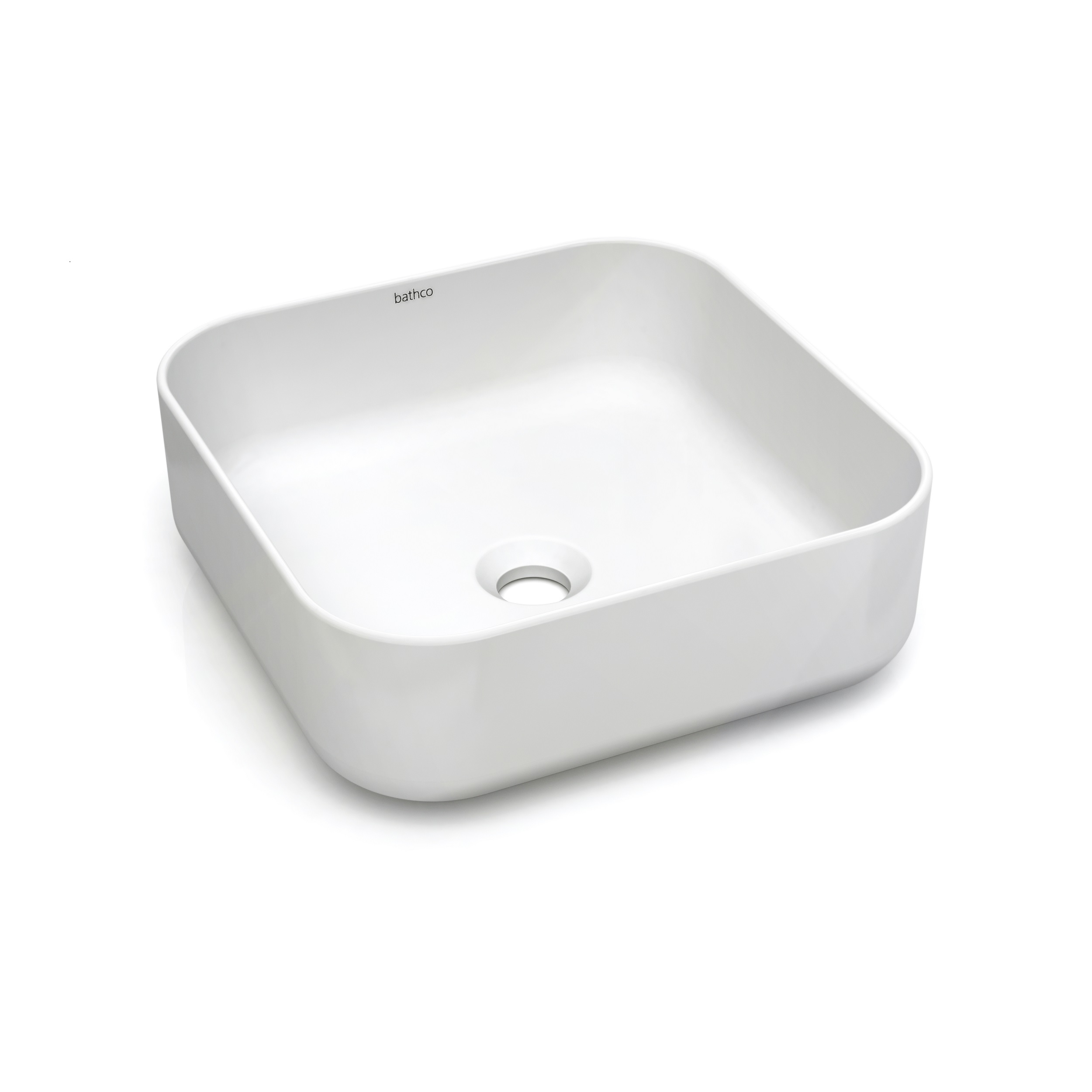 Firkantet servant med avrundede hjørner. Hvit matt porselen. Uten overløp. Mål: 385x385mm. Høyde 135mm.