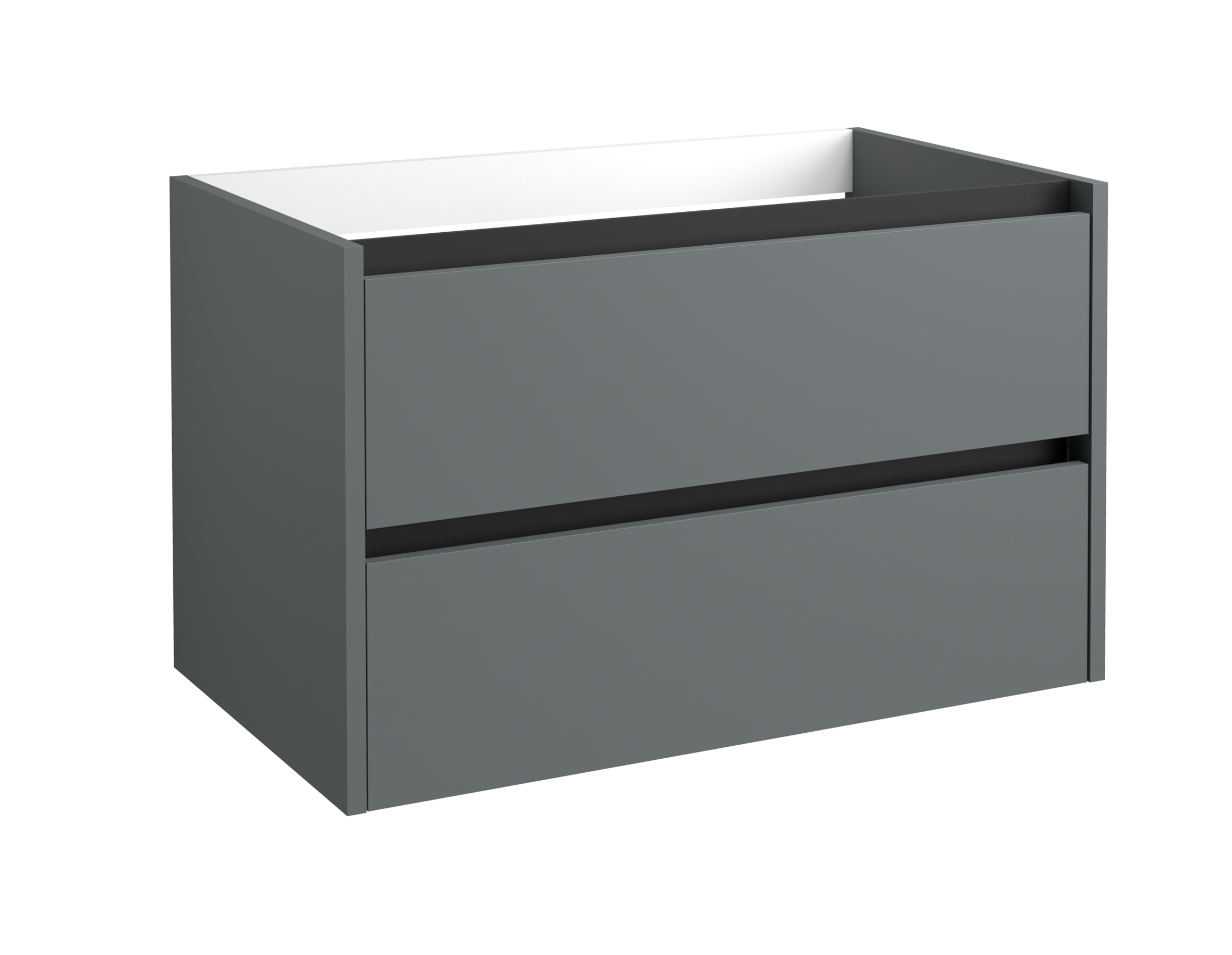 Servantskap i grå matt farge med sorte innfelte grep.To skuffer med dempelukking. Høyde 50cm
