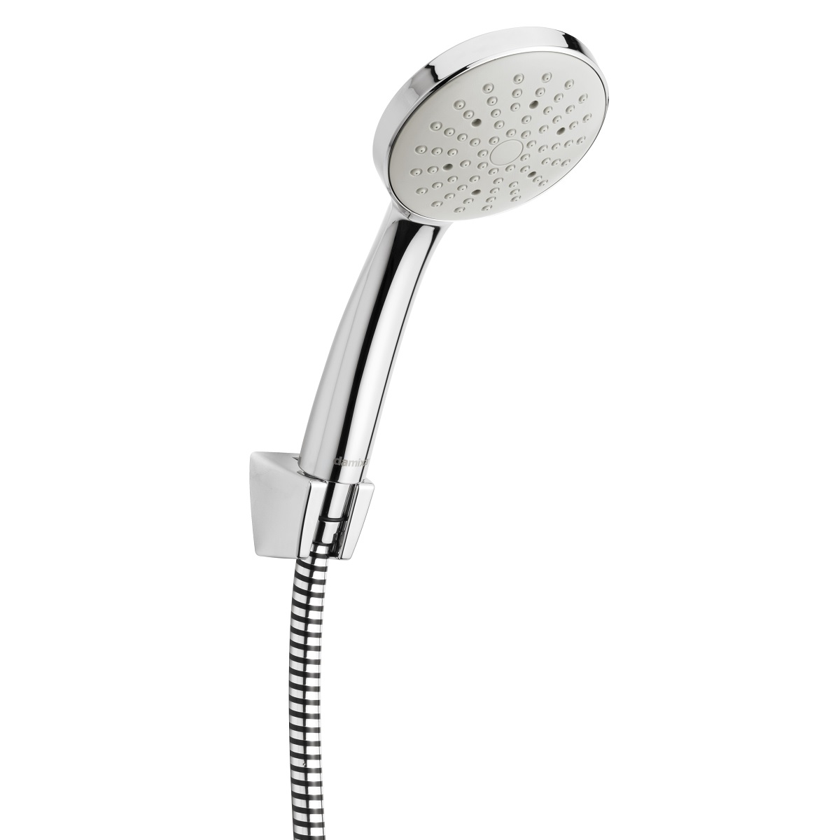 Håndusj med sparedyse på fast veggfeste. 1,5 meter slange. En innstilling på stråle. Gir maks 9 liter vann pr minutt.
