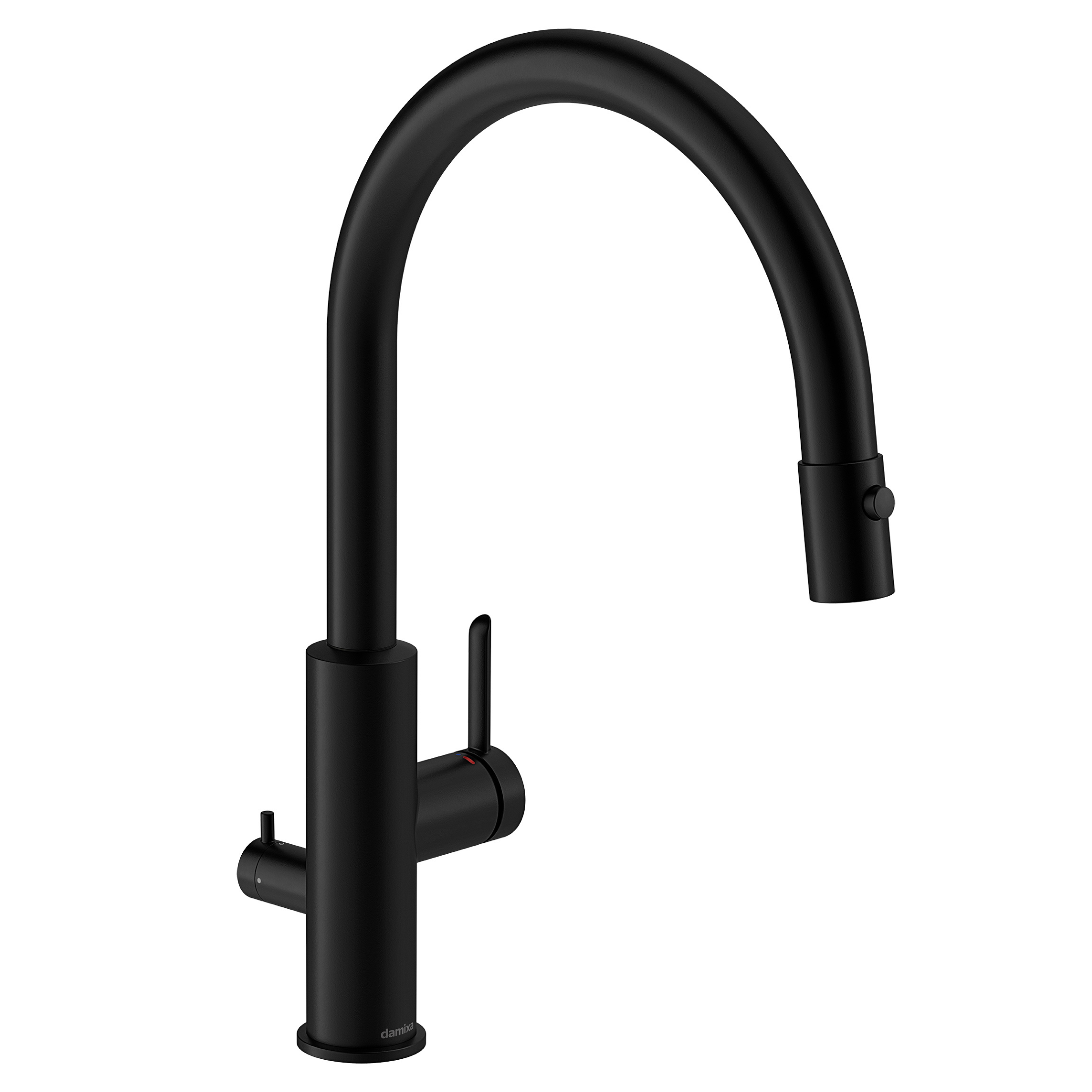 Iris i sort matt gir et markert og moderne uttrykk. Overflaten motstår fingermerker og er enkel å holde ren. Den uttrekkbare tuten med to stråletyper gjør oppvasken enkel, mens avstengingen for oppvaskmaskin er diskret plassert på baksiden for et helhetlig uttrykk.