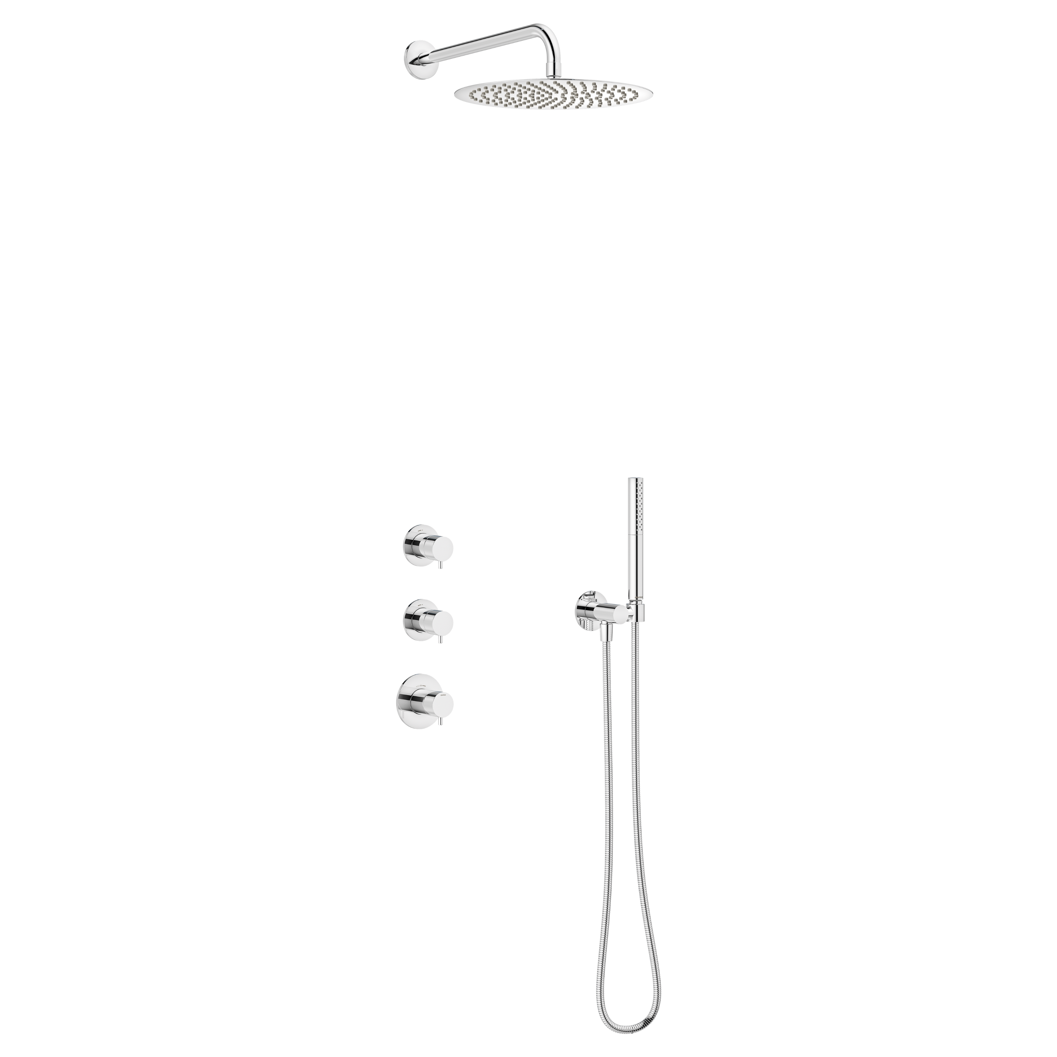 Iris XS1 takdusj for innbygging i krom. Takdusjhode på 300mm, som gir en jevn vannfordeling. Medfølgende hånddusj har 3 stråleinnstillinger inkludert Mist-funksjon for en unik dusjopplevelse.