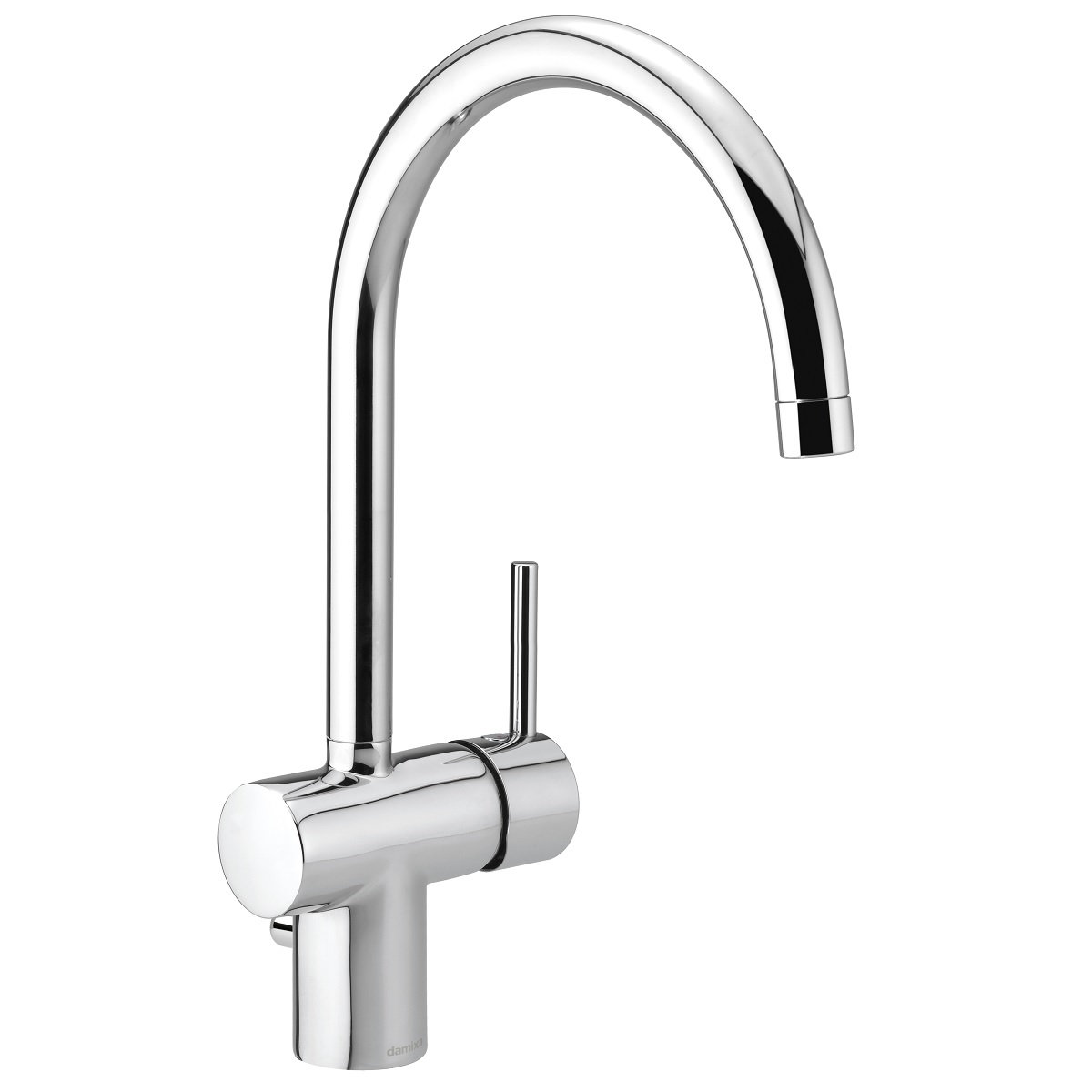 Høy kjøkkenkran med C-tut. Hendel med kaldstart. Eco-save og skoldesperre. Inkludert avstengning for oppvaskmaskin.
