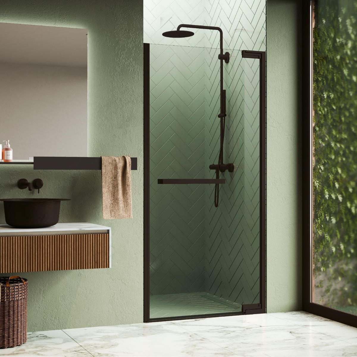 20 990 krLekker dusjnisje med prisvinnende design. N180 er pivot-hengslet og kan åpnes inn- og utover. Med justerbar soft-close og magnet mot profilen lukkes døren perfekt av seg selv når du går ut og inn av dusjen. Døren er vendbar slik at den kan monteres med åpning både til høyre og venstre side. Glasset er behandlet med crystal clear, en antibakteriell overflatebehandling, slik at dråper renner av glasset. Kalk og såperester har vanskeligere for å feste seg som gjør dusjen til et vedlikeholdsvennlig produkt i ditt hjem. Døren har en totalhøyde på 200cm og solid 8mm glass som oser eksklusivitet. Døren er vendbar slik at den monteres med åpning både til høyre og venstre side. Løsningen kommer i hele 9 ulike overflater, og er virkelig en dekorativ løsning til baderommet i kombinasjon med kraner og tilbehør i samme overflate.