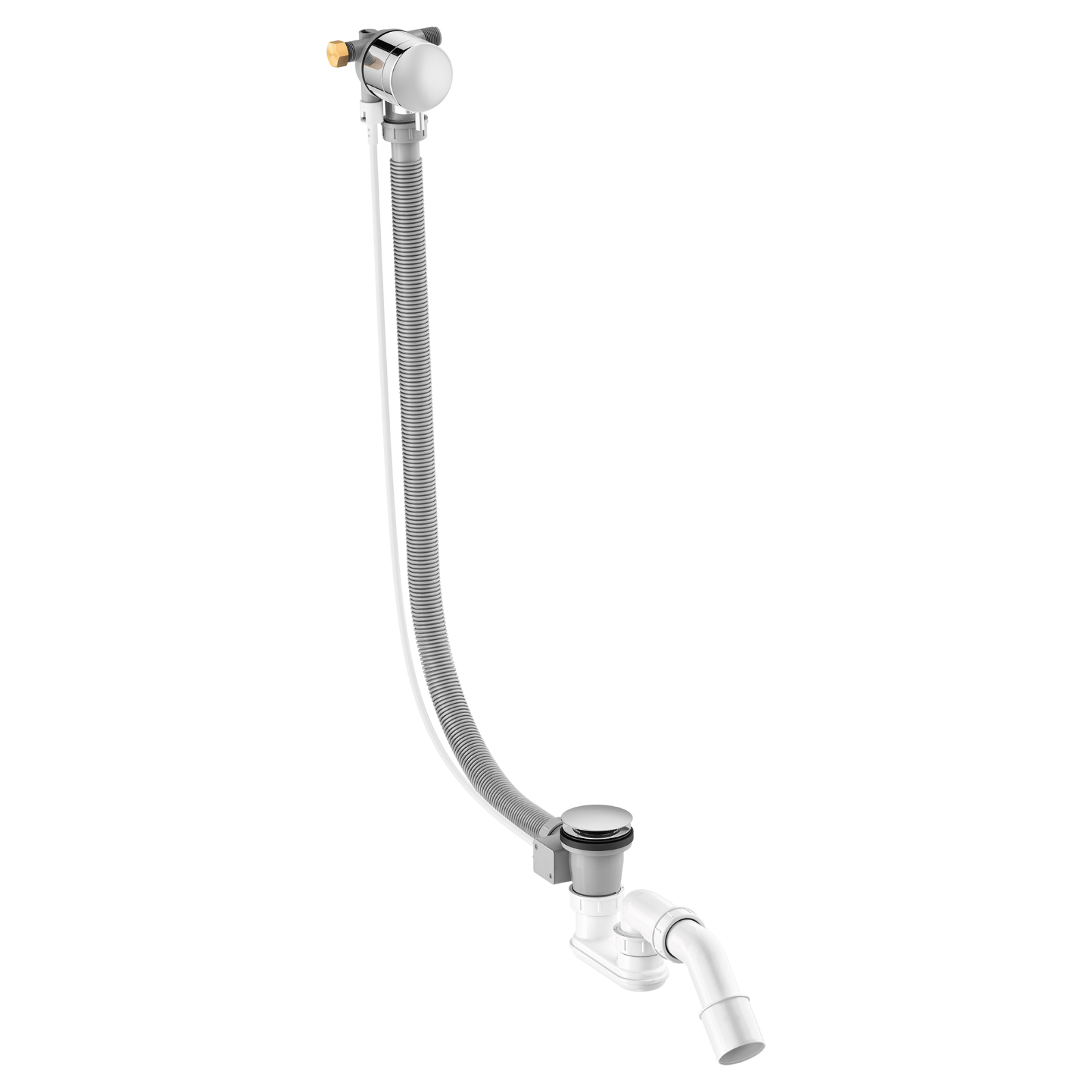 Overløpssett for badekar i krom utførelse. Overløpssettet er komplett for badekar med påfylling via overløp. Overløpssettet er komplett med klikkbar bunnventil i badekaret. Krever tilkobling til vann for påfylling via overløp.