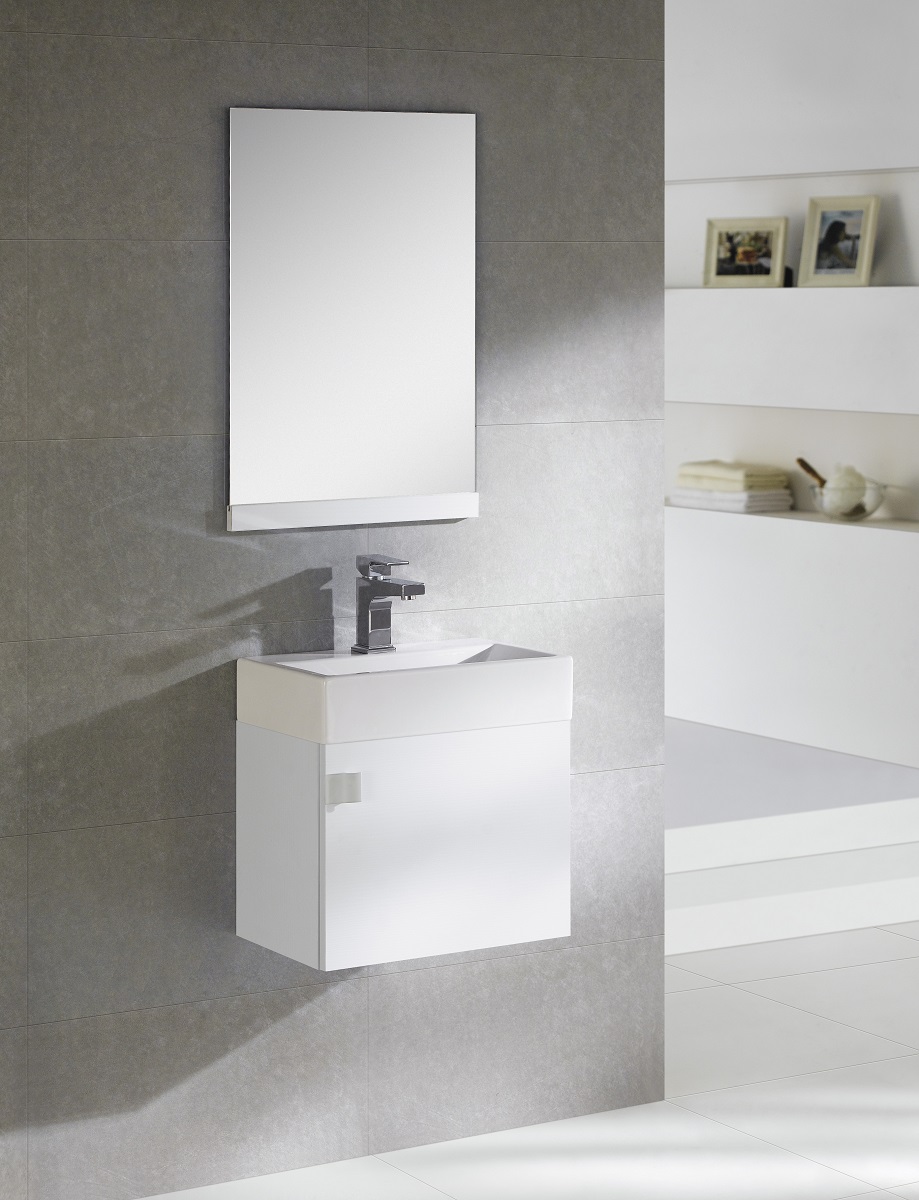 Paris er et møbelsett som passer godt på et lite toalettrom. Settet består av speil, underskap og porselensservant. Settet er flatpakket. Døren åpnes fra venstre side. Kranhull bak på servanten.