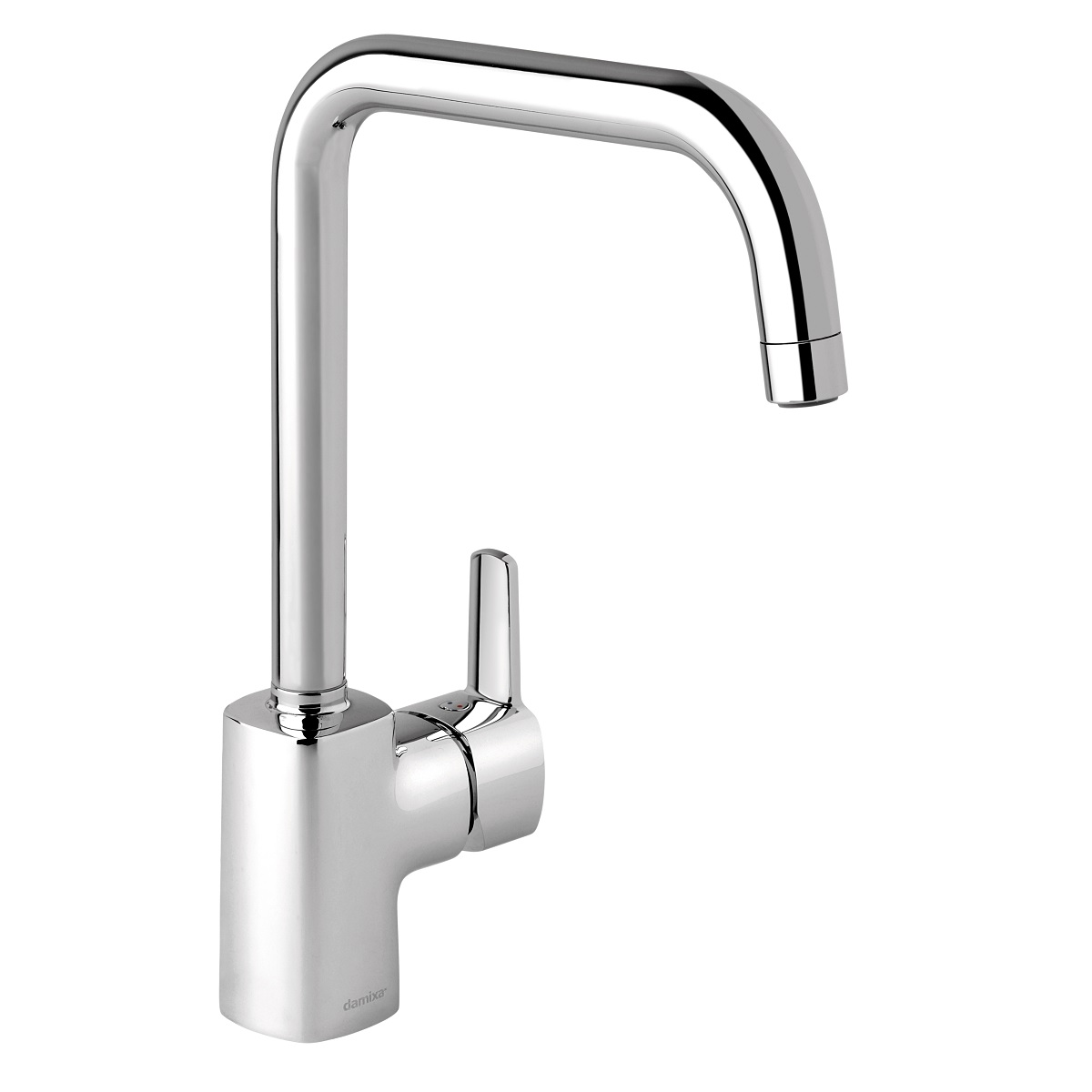Kjøkkenkran med praktisk høy tut i tidløst design. Skoldesperre og eco-save. Krom