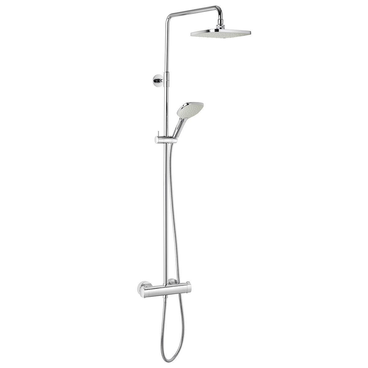 Pine komplett takdusj med 205mm takdusjhode. Hånddusj med tre innstillinger på strålen. Rubcelan for enkel fjerning av kalk og smuss på dusjhodene. Justerbar stang 1020-1250mm. Vender mellom kaldt og varmt vann i termostatkranen. Skoldesperre.