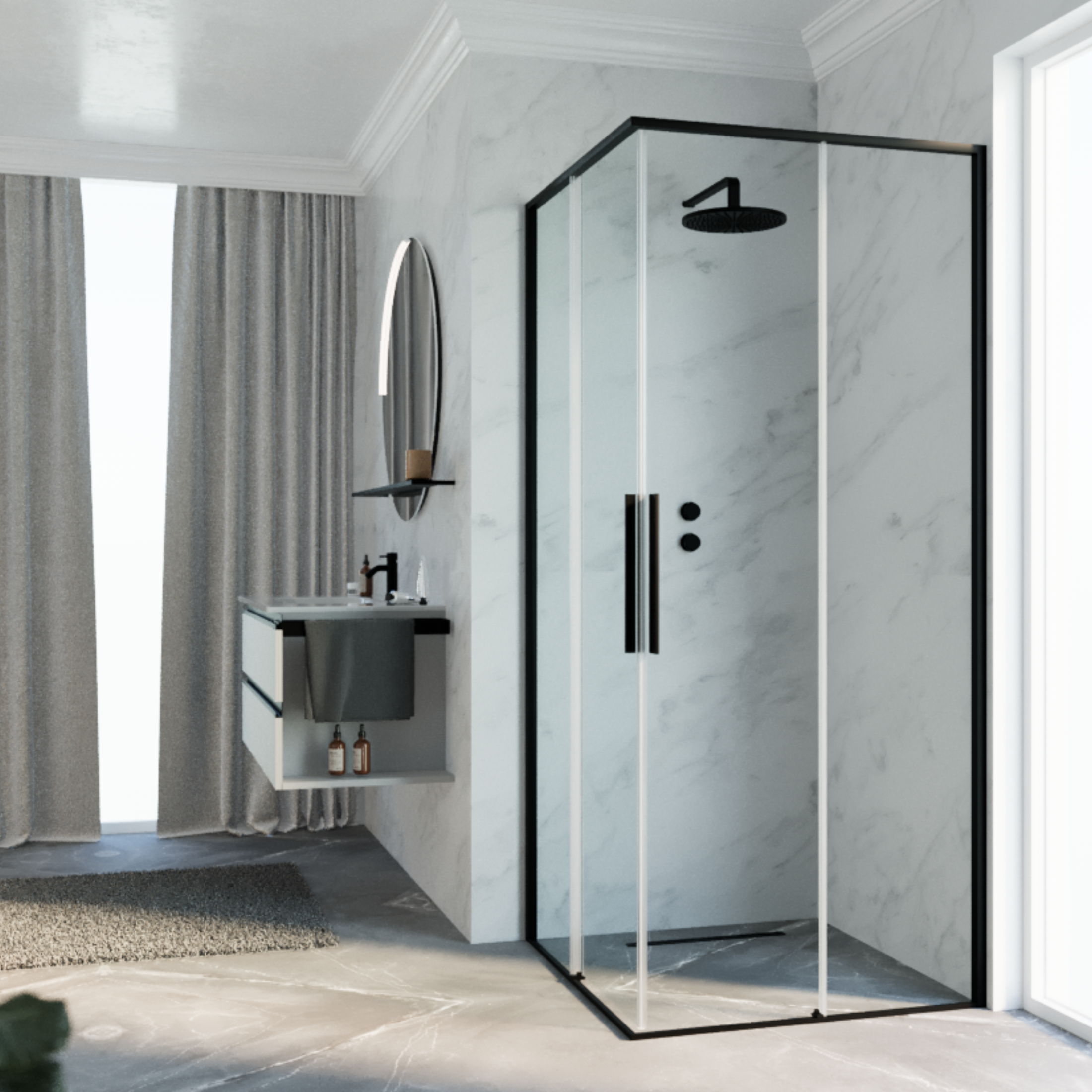 - Materiale dusjvegger: Klart glass