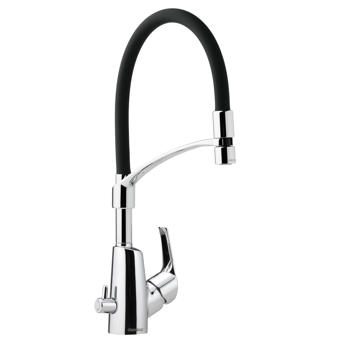 Rowan Pro kjøkkenkran fleksibel tut m/avstengning, krom/sort