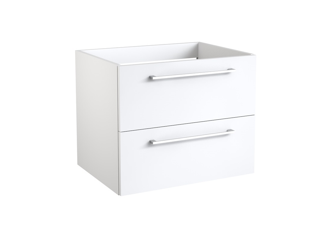 Rowan i hvit matt overflate gir en tidløs, men likevel rolig og elegant finish. Servantskapet har to skuffer med dempelukking og leveres med standard grep i krom.
