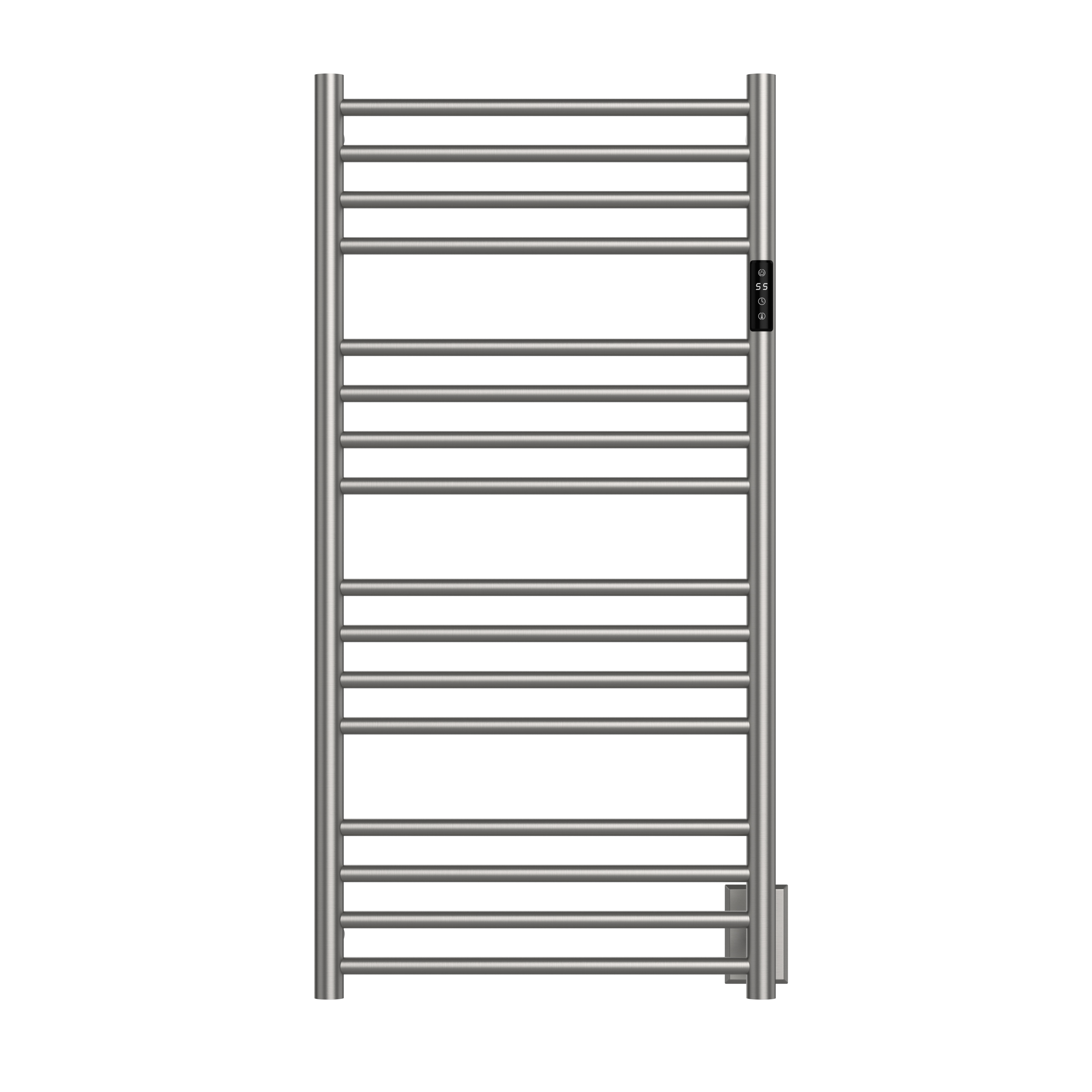 Safir håndkletørker har liggende ribber som gir en større overflate for tørking av håndkle. Temperaturen er justerbar mellom 30-60 grader. Med en timer kan håndkletørkeren være på i inntil 8 timer slik at håndklærne er tørre og varme når du trenger dem. Det er lurt å planlegge for håndkletørker ved opppussing av badet, men alle modellen har 2-i-1 tilkobling som gjør at du kan velge mellom stikkontakt og tilkobling på faststrøm. Inkludert timer og monteringssett for innbygging og stikkontakt. 215W.