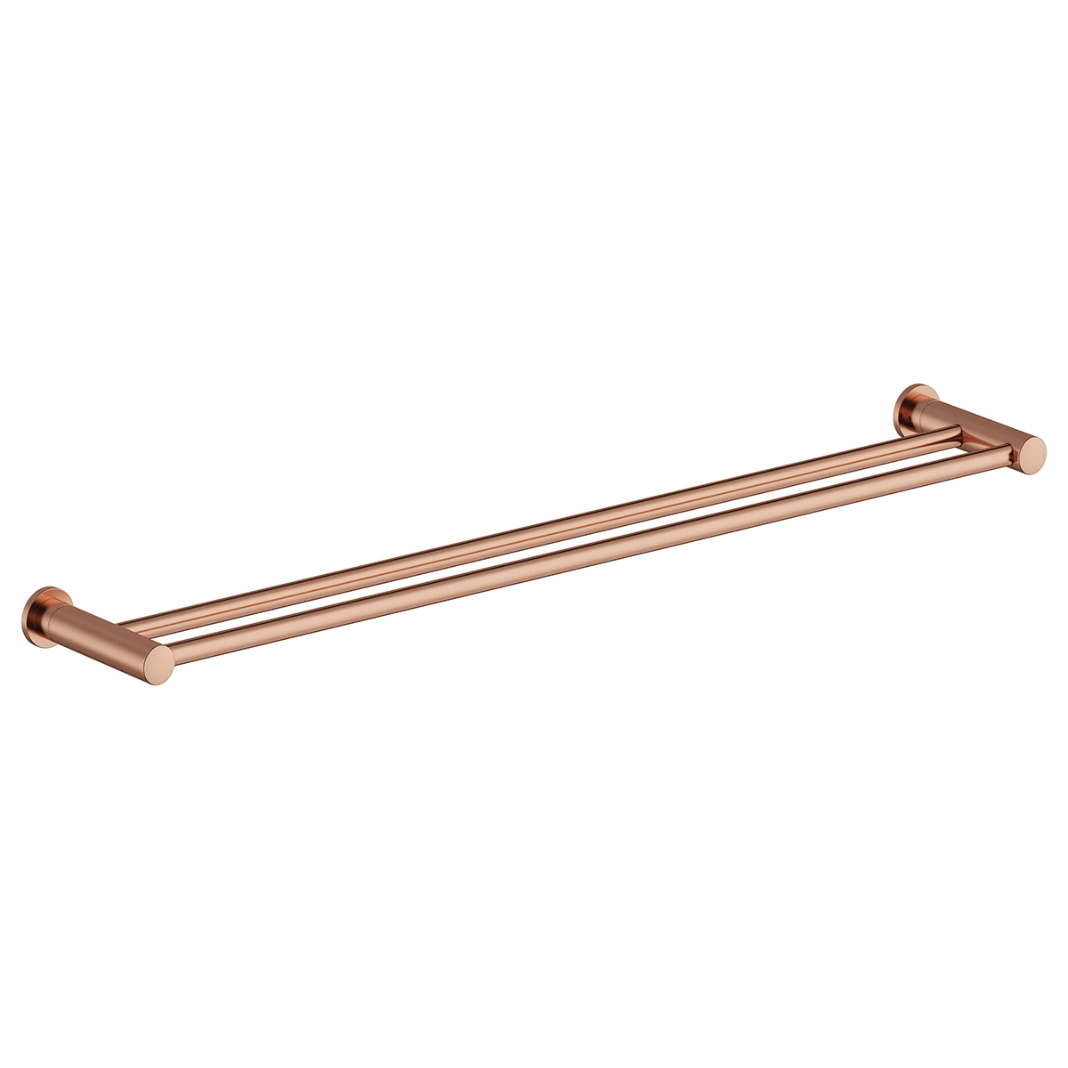 Dobbel håndklestang i messing med overflate i ekstra herdet (PVD)i børste kobber.Leveres i flere overflater. Håndklestangen kan kappes til ønsket lengde. Festes med skruer.