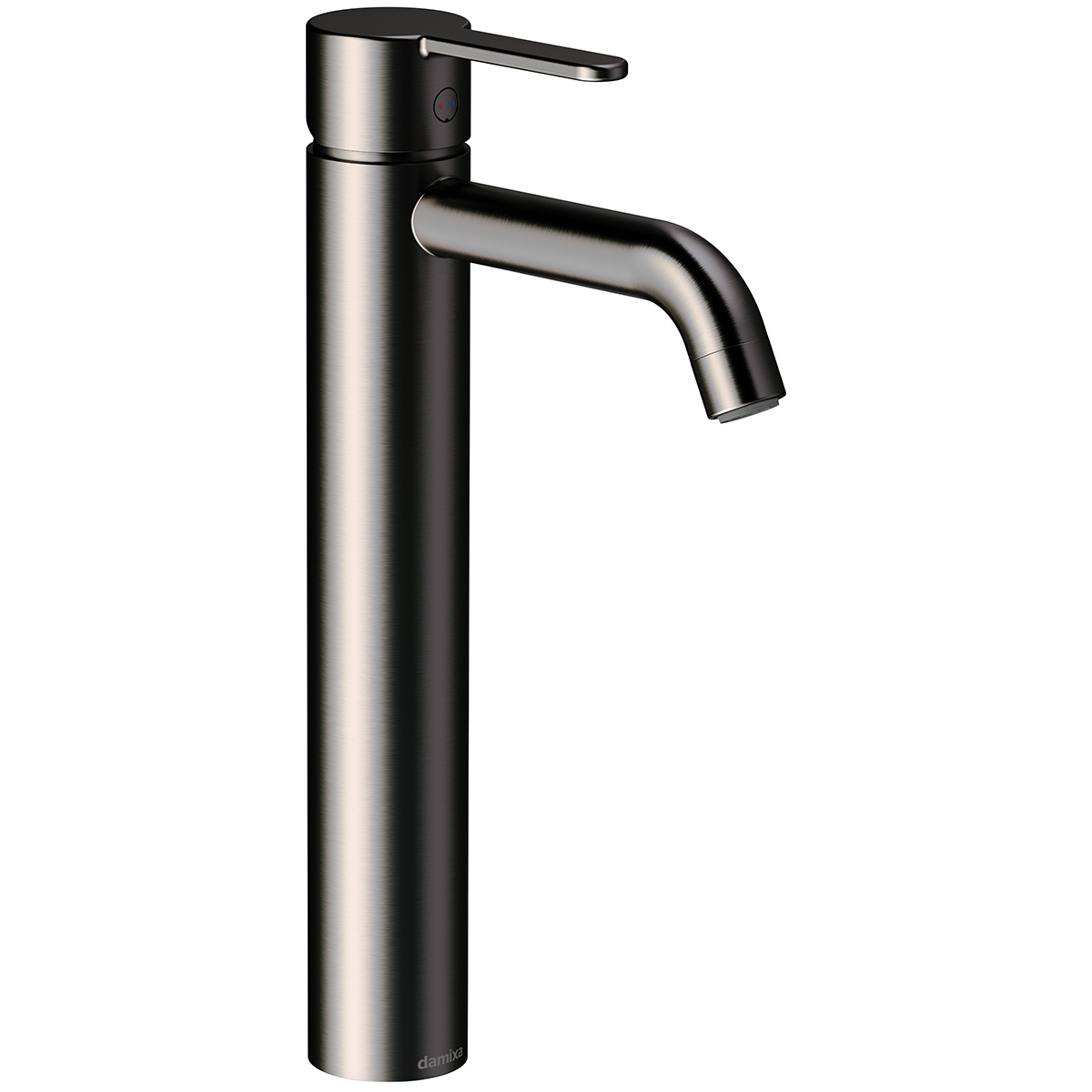 Høy servantkran for bolleservant. Med kaldstart og rub-clean. Grafittgrå slitesterk PVD-behandlet overflate.