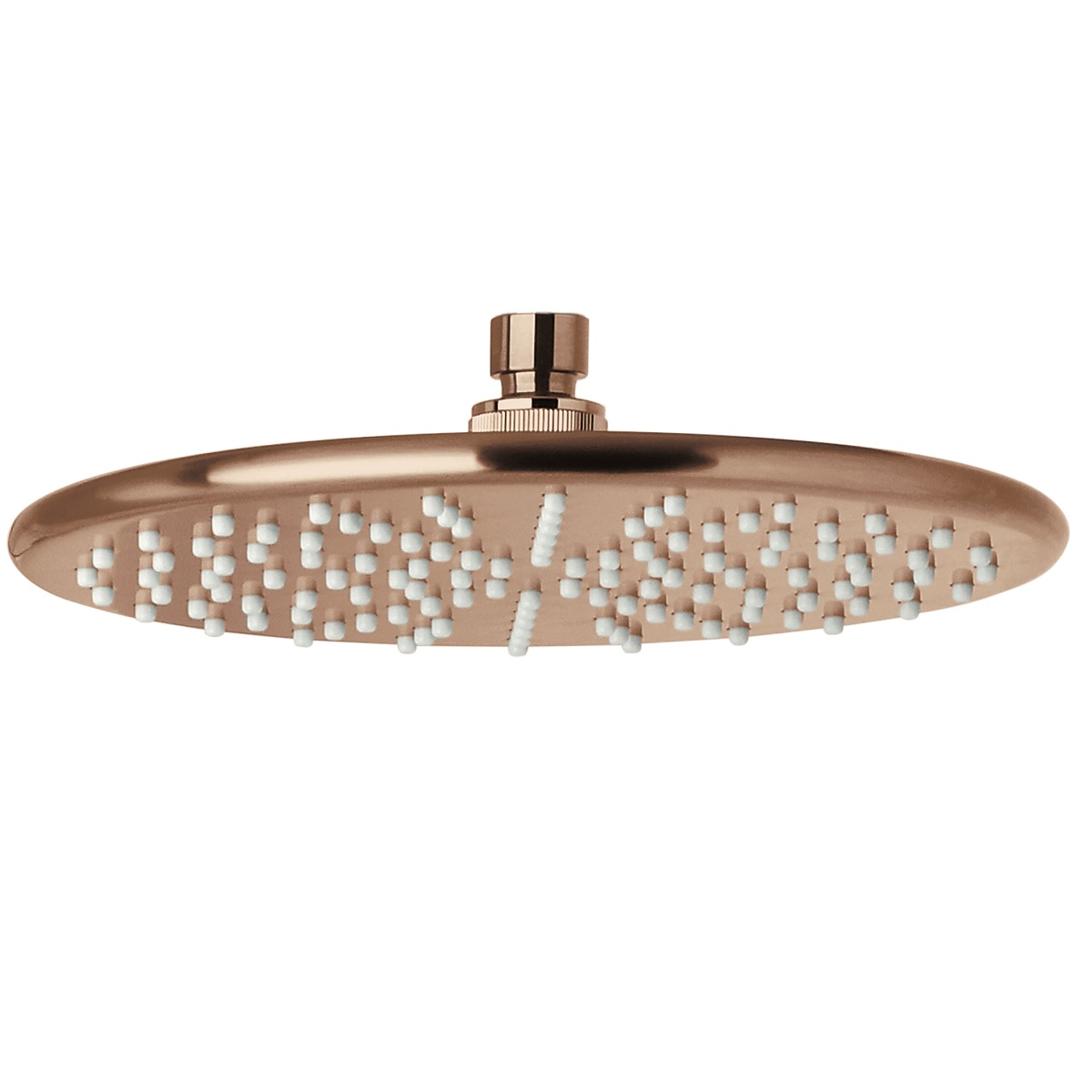 Takdusjhode Ø250mm med rubclean for enkel rengjøring. Overflatebehandlet i børstet kobber.