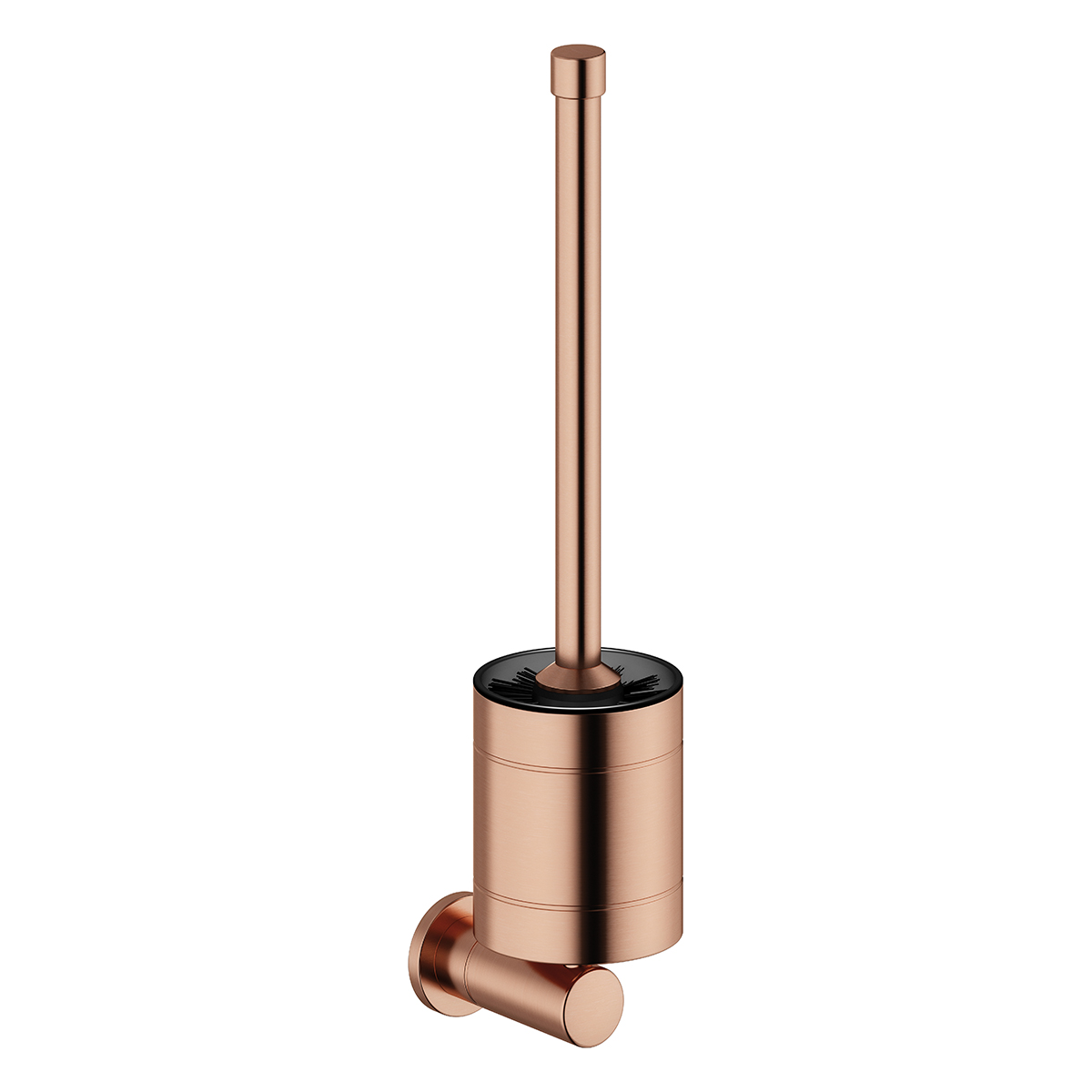 Veggmontert toalettbørste i messing med overflate i ekstra herdet (PVD) børstet kobber.Leveres i flere overflater.