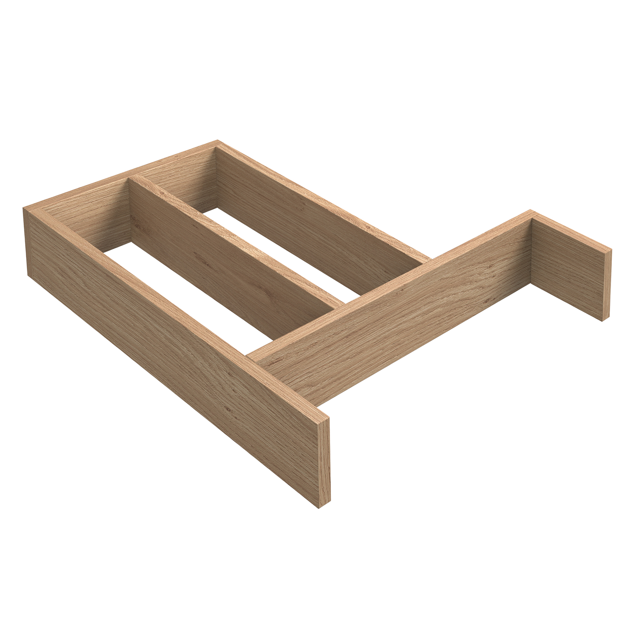 Skuffdeler i heltre for servantskap i standard dybde. Velg mellom tre ulike overflater og organiser skuffen i baderomsmøbelet med lekre skuffedelere i heltre.