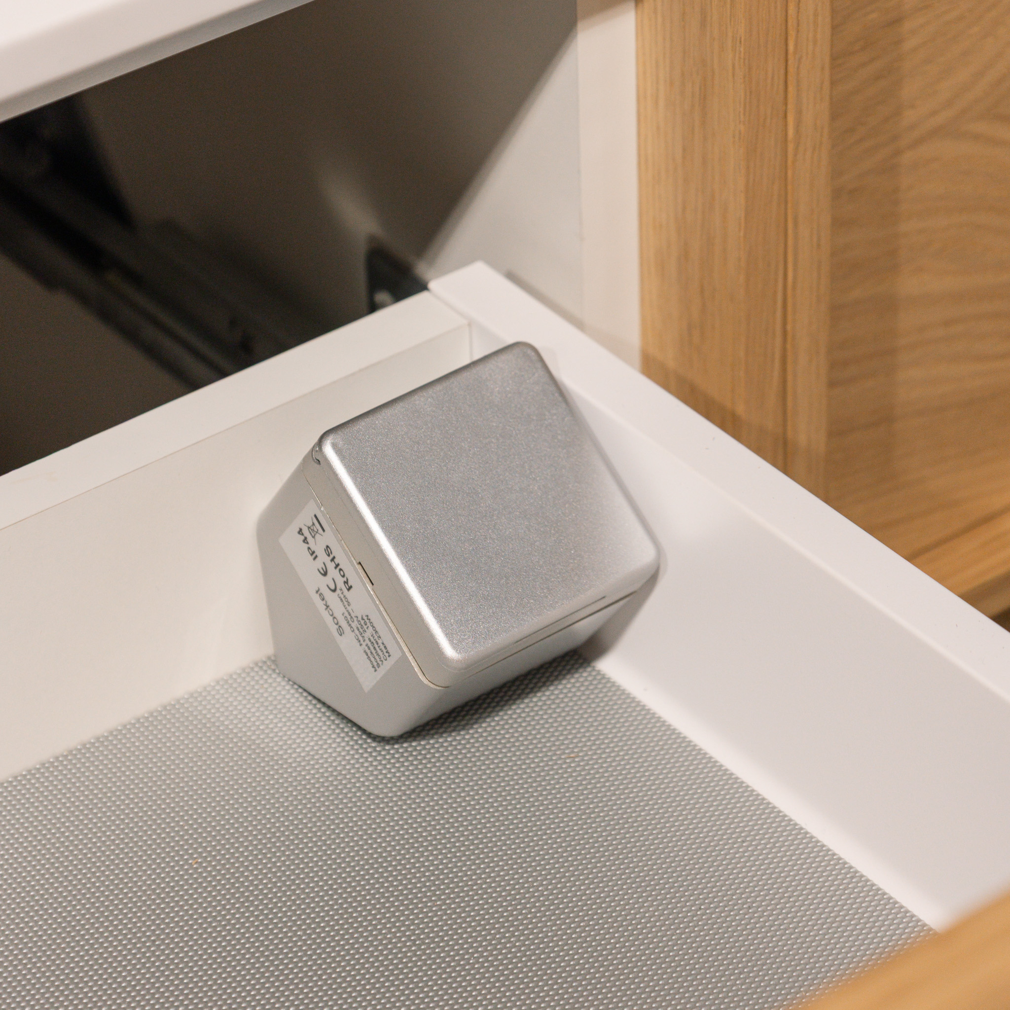 Stikkontakt for skuff gir deg en praktisk og diskret strømtilkobling inne i servantskapet. Den kan monteres både i nedre og øvre skuff, avhengig av behov, og gjør det enkelt å koble til elektriske apparater som hårføner, barbermaskin eller tannbørstelader uten synlige ledninger på benkeplaten. Stikkontakten har lokk som beskytter mot fukt og støv når den ikke er i bruk, og bidrar samtidig til et ryddig og sikkert baderom. En smart løsning som gjør hverdagen enklere. Stikkontakten kan leveres ferdig montert til våre baderomsmøbler ved behov.