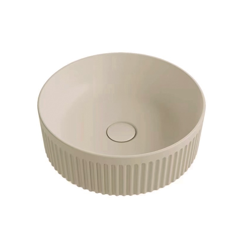 Wadi bolleservant i lys beige er perfekt til lyse bad for å bryte med det helt hvite. Perfekt i kombinasjon med kraner i kobber og børstede overflater.