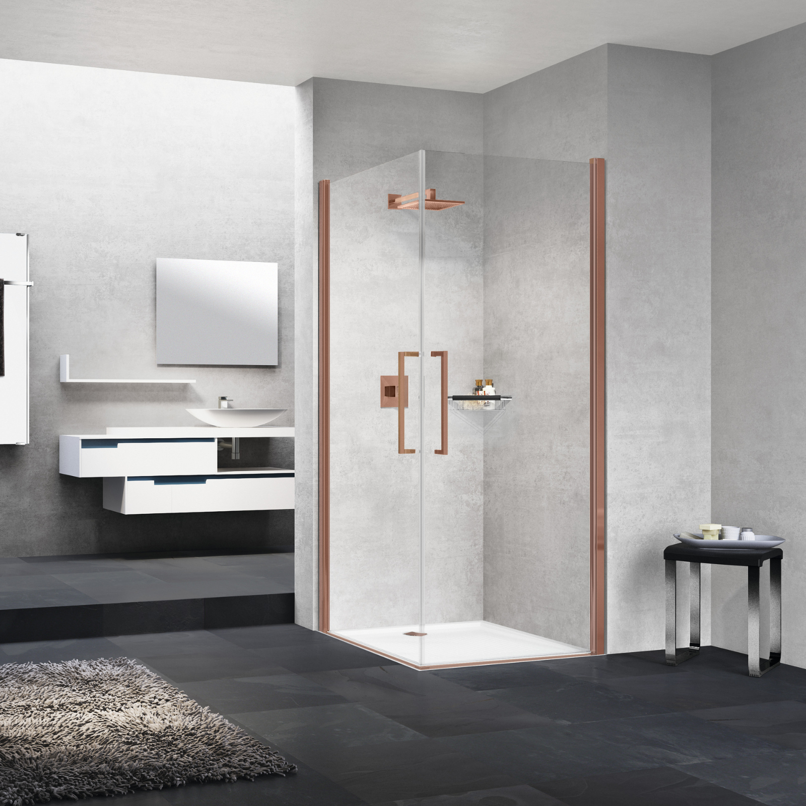 Rålekker dusjløsning i PVD behandlet overflate i børstet kobber. Med 6 mm herdet sikkerhetsglass og Crystal Clear behandlet glass med antibakteriell virkning er denne dusjveggen virkelig en kvalitetsløsning med flotte moderne hele profiler i børstet kobber. Monteringsmål på dusjveggen er 99-101. To av disse bestilles for komplett dushjørne. I børstet kobber får du kun denne dusjveggen i 89-91, 99-101 og 79-81.