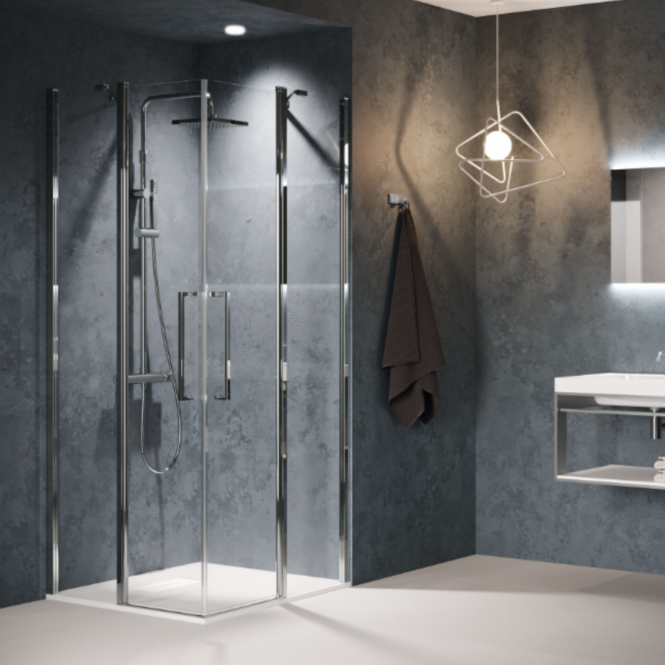 Dusjdør for hjørne med fastfelt som egner seg spesielt godt til små baderom.