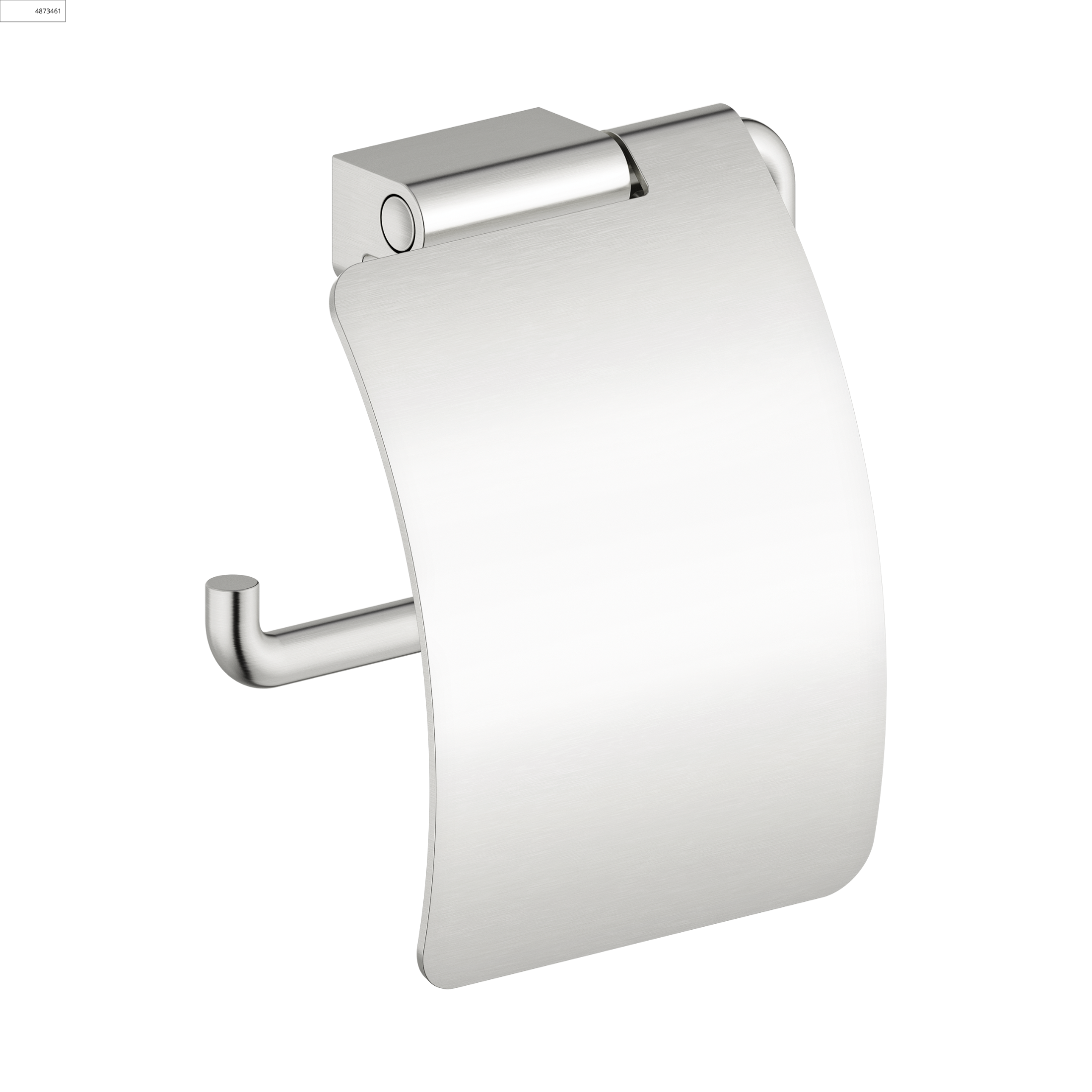 Stilren toalettrullholder i børstet stål med PVD-behandling for ekstra holdbarhet og et elegant utseende. Utstyrt med et praktisk deksel for å beskytte toalettrullen. Enkel og rask montering som er limbar, uten behov for boring.