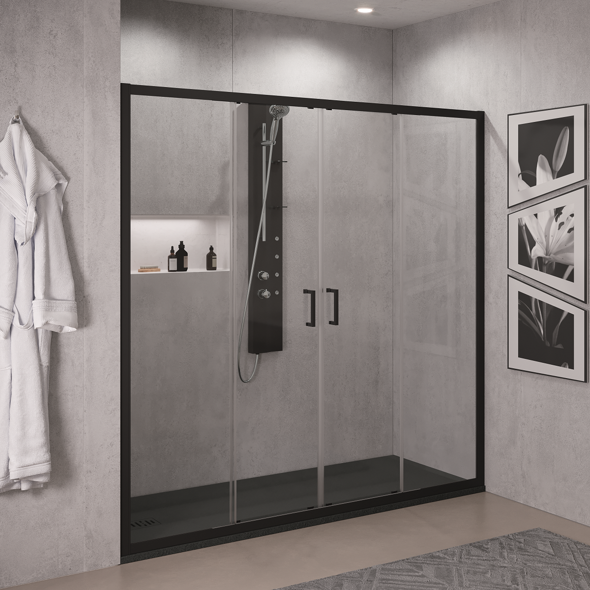 Med Zephyros 2.0 2A får du en stilren og holdbar dusjløsning som vil passe flott i din dusjnisje. Dette er en innrammet dusjvegg med to faste felt på siden og skyvedører på midten. Den er laget av herdet sikkerhetsglass av høy kvalitet, som gir deg trygghet og sikkerhet samtidig som den er rett å renholde med Crytal Clear-behandlet glass.